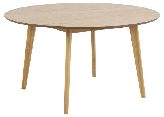 Okrągły stół Roxby utrzymany został w duchu minimalizmu. Geometria, prosta forma oraz jednolita kolorystyka to elementy, które sprawiają, że stół jest ponadczasowy. Blat fornirowany drewnem dębowym w naturalnej kolorystyce o wykończeniu półmatowym dopełniony został podstawą wykonaną z drewna kauczukowego. Stół Roxby wystepuje również z mniejszym blatem o średnicy 105 cm. Stół wymaga montażu, jego waga wynosi 31kg. Max. ilość sztuk w opakowaniu: 1 Wymiary kartonu: 149 x 14 x 147 cm