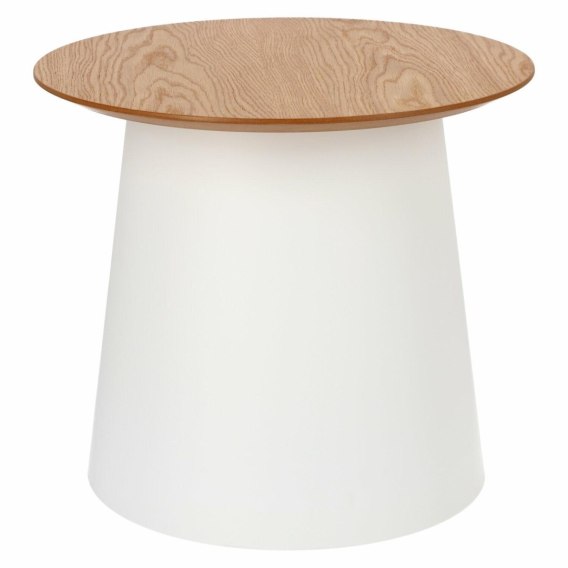 Nowoczesny stolik Ethos przyda się w każdej przestrzeni. Będzie on idealnym miejscem na klucze w przedpokoju, stołkiem na odłożenie kawy przy sofie w salonie lub nawet jako miejsce na ręcznik w łazience. Stolik przy tym jest niezwykłym obiektem dekoracyjnym. Blat produktu wykonany został z płyty laminowanej w kolorze drewna, czyli materiału cenionego za swoją niezwykle wysoką wytrzymałość i odporność na uszkodzenia. Obrzeże blatu o lekko ściętym zakończeniu podkreśla wyjątkowy styl stolika. Konstrukcja osadzona została na wytrzymałej podstawie w kolorze eleganckiej bieli. Podstawa nie tylko z