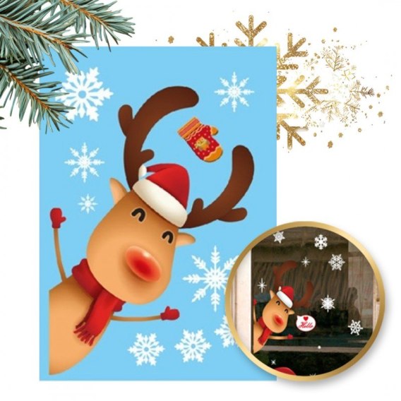 Świąteczne naklejki kolorowe na okno 20 x 30 cm NKD19
