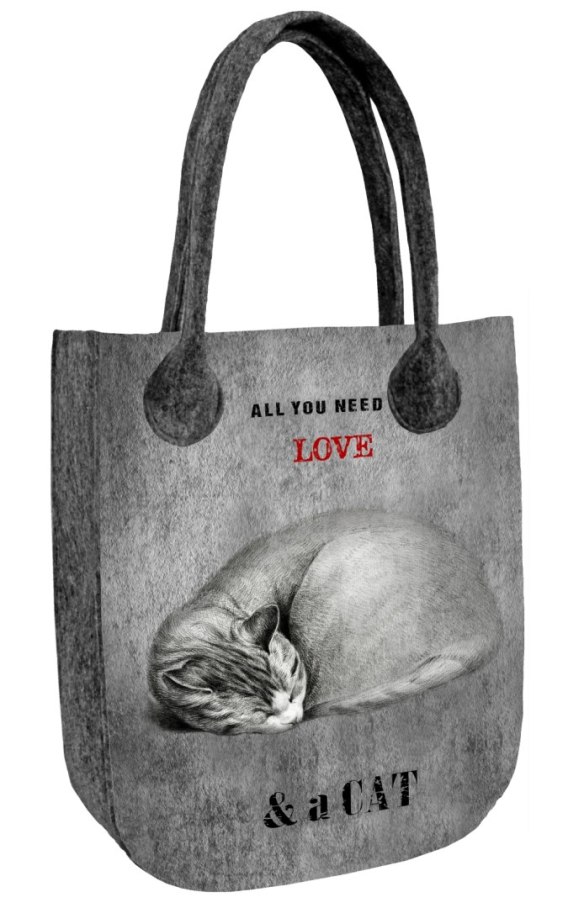 Praktyczna miejska torebka wykonana z filcu model CITY z wzorem Sleeping Cat.