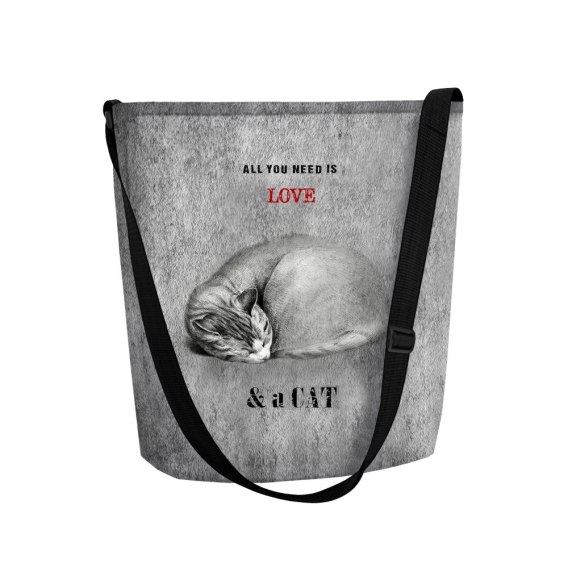 Praktyczna torebka listonoszka wykonana z filcu model FUNKY ze wzorem SLEEPING CAT.