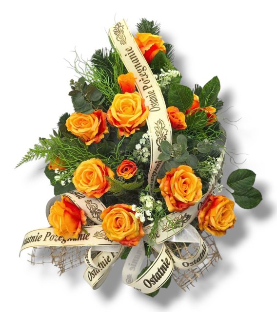 WIĄZANKA POGRZEBOWA NA FLORECIE WIENIEC POMARAŃCZOWE RÓŻE + WŁASNY NAPIS + wysyłka 24h