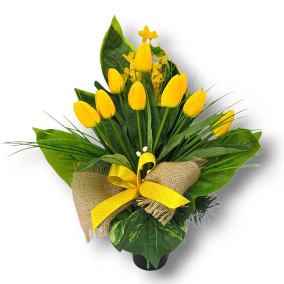 BUKIET WKŁAD DO WAZONU TULIPANY KWIATY NA CMENTARZ GRÓB POMNIK WZÓR WIOSENNY