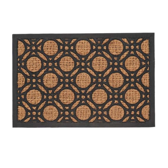 Nowoczesna wycieraczka z Włókna Kokosowego o wymiarach 60,7 x 40 cm, która jest nie tylko wytrzymałą i skuteczną w usuwaniu zabrudzeń z butów, ale również stanowi stylowy element dekoracyjny.