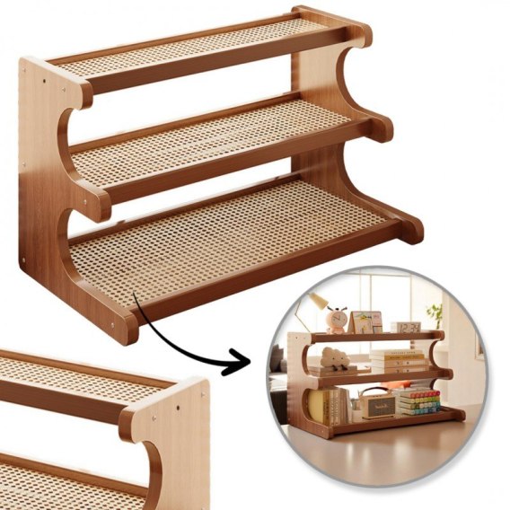 Wielofunkcyjny 3-poziomowy regał bambusowo - rattanowy, półka na biurko 19x50x31 cm SZ49