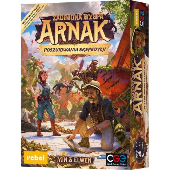 Zaginiona wyspa Arnak: Poszukiwania ekspedycji to rozszerzenie, które zaprasza graczy do udziału w specjalnej kampanii fabularnej, którą możesz rozegrać samodzielnie lub w dwuosobowym trybie współpracy. Niektóre jej elementy takie jak karty wydarzeń czy nowe świątynie do eksploracji mogą urozmaicić także klasyczne rozgrywki w trybie wieloosobowym! Dodatkowo dwaj nowi liderzy pozwolą Ci wypróbować kolejne ciekawe strategie, a nowe karty przedmiotów i artefaktów zapewnią jeszcze większą różnorodność zabawy.