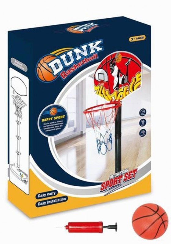 W komplecie znajduje się piłka do koszykówki i pompka.