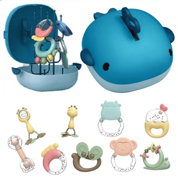 Zestaw grzechotek grzechotka gryzak walizka suszarka