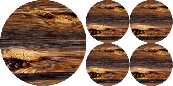 Zestaw podkładek na stół okrągłych 1+4 - DREWNO