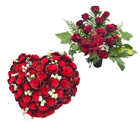 Ten komplet został przygotowany z myślą o spójnej i eleganckiej dekoracji nagrobka. Stroik i bukiet tworzą harmonijną całość, która w piękny sposób podkreśli pamięć o bliskich, zapewniając uroczysty i zadbany wygląd pomnika.