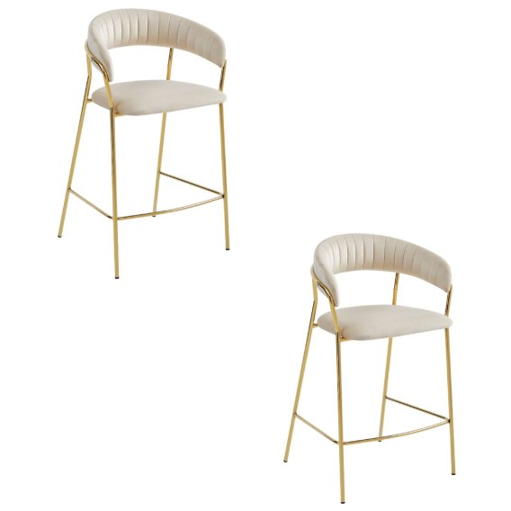 Hoker BADIA - beż aksamit / nogi złote 2 sztuki