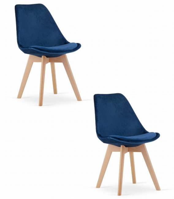 Krzesło NORI - niebieski aksamit - nogi naturalne x 2