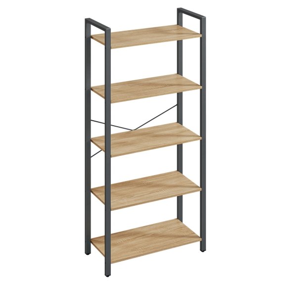 Regał cechuje się uniwersalnością oraz funkcjonalnością, będzie świetnie pasował do salonu, sypialni, przedpokoju, domowego gabinetu, a 5 półek ułatwi nam dostęp do ulubionych rzeczy.